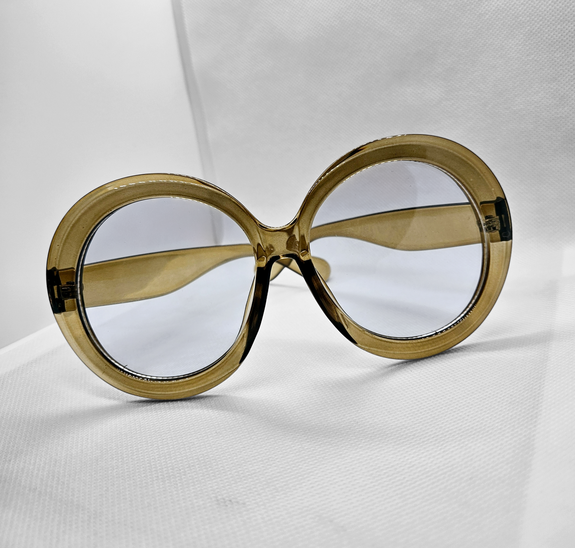 Trendy clear lens glasses. Acrylic round frame full rim, oval shaped, polycarbonate lens and frame with metal hinge. Available in Black, pink, green, white, and gold.