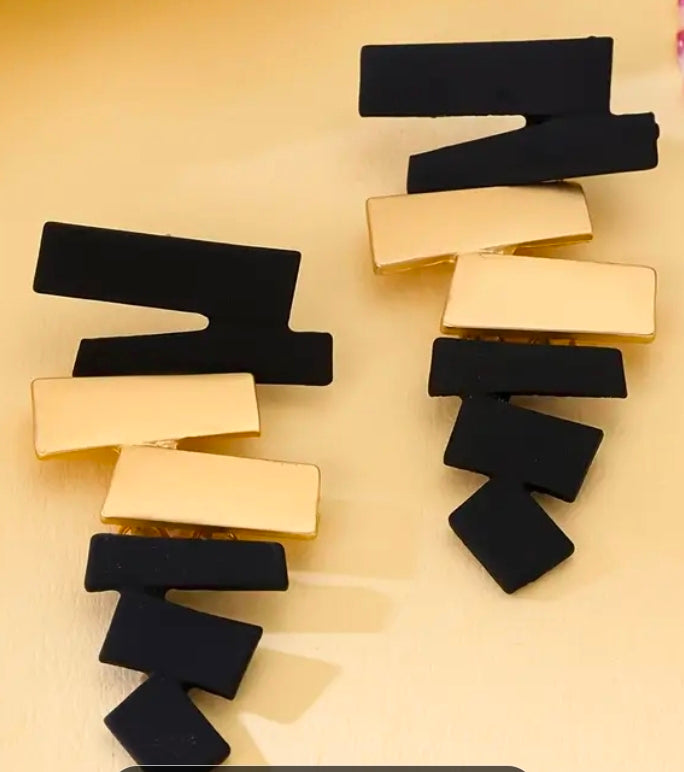 Vintage boho irregular geometric trapezoid earrings. Stainless steel in black and golden.