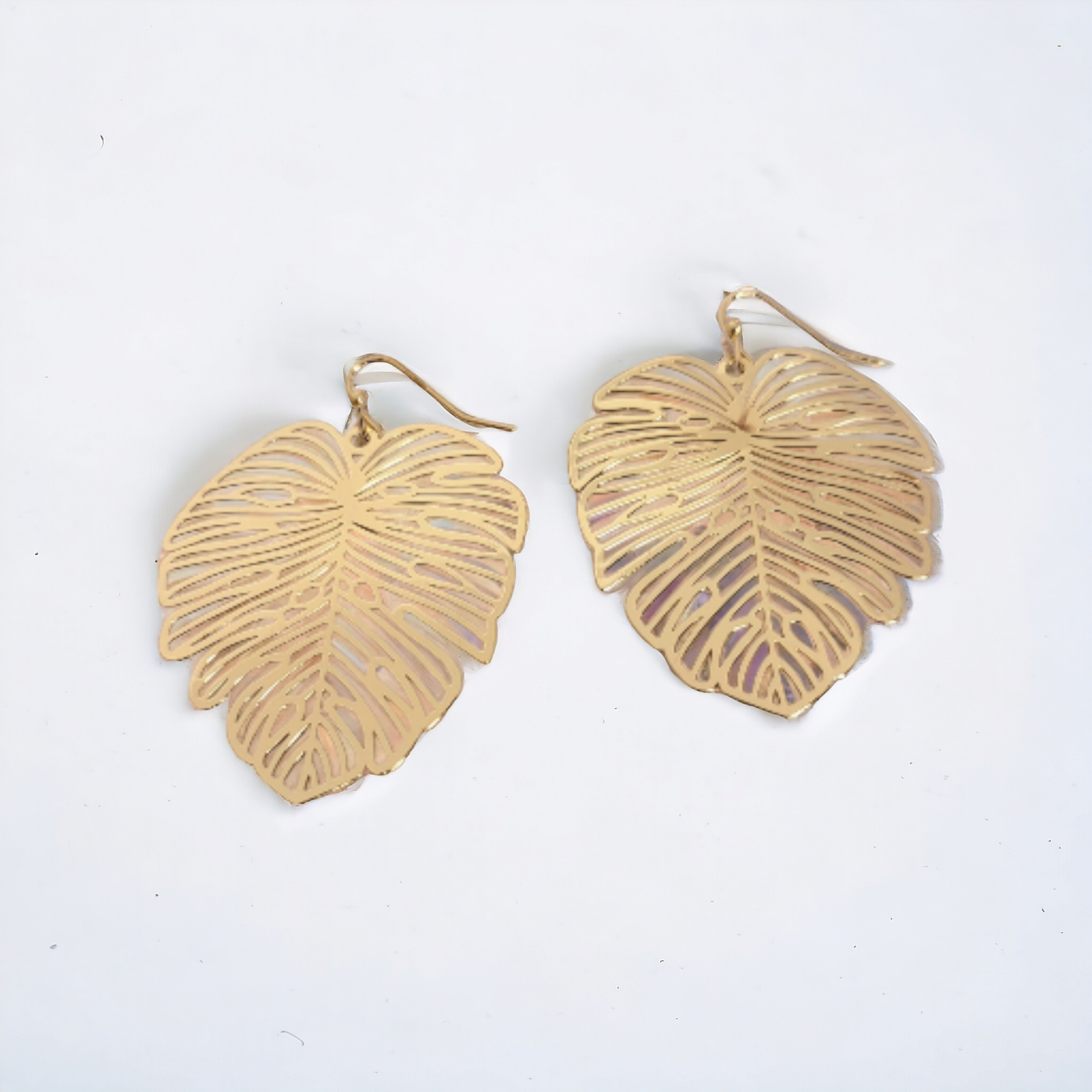 Gold hollow out leaf earrings.