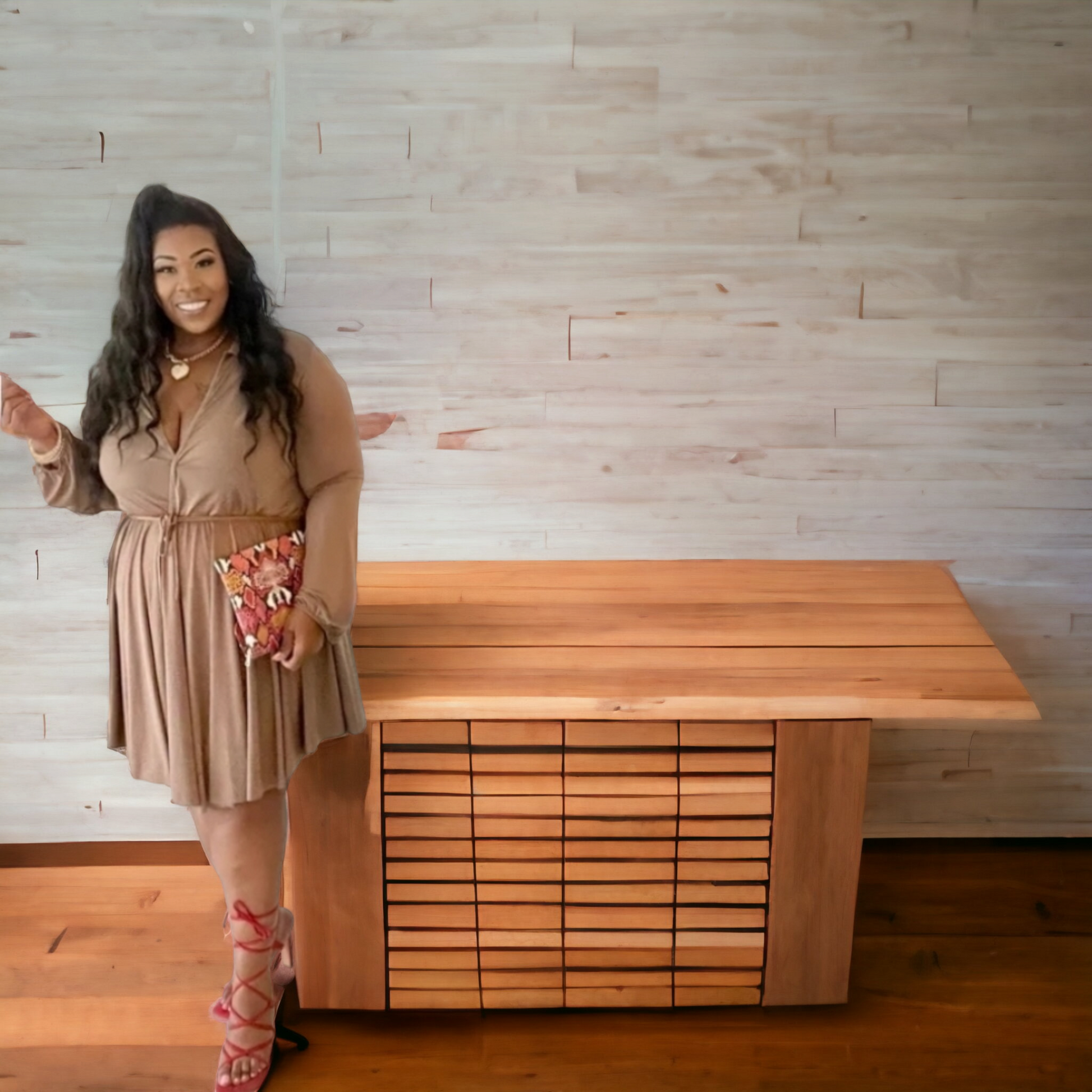 Waterfall dress with tie belt. Available in sizes XL, 2X and 3X.